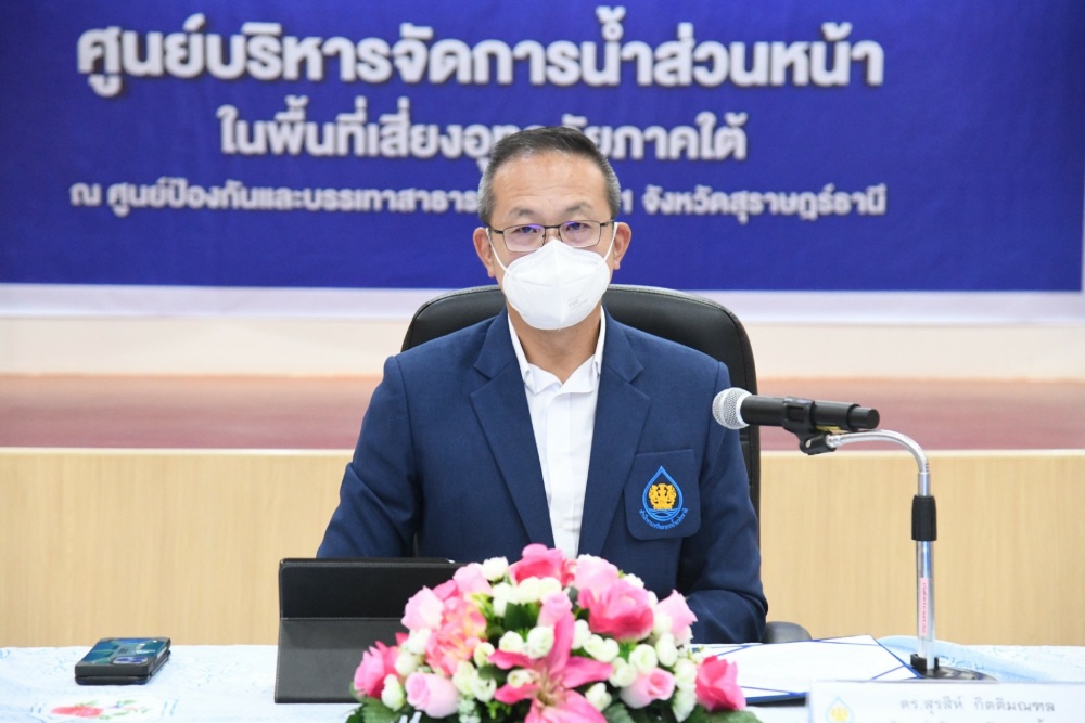 วันนี้ (30 พ.ย. 65) ณ ศูนย์ป้องกันและบรรเทาสาธารณภัยเขต 11 จ.สุราษฏร์ธานี ดร.สุรสีห์ กิตติมณฑล เลขาธิการสำนักงานทรัพยากรน้ำแห่งชาติ (สทนช.) ในฐานะรองผู้อำนวยการกองอำนวยการน้ำแห่งชาติ (กอนช.) เปิดเผยภายหลังเป็นประธานพิธีเปิดศูนย์บริหารจัดการน้ำส่วนหน้าในพื้นที่เสี่ยงอุทกภัยภาคใต้ และประชุมคณะทำงานอำนวยการบริหารจัดการน้ำส่วนหน้าในพื้นที่เสี่ยงอุทกภัยภาคใต้ ครั้งที่ 1/2565 ร่วมกับหน่วยงานที่เกี่ยวข้อง อาทิ กรมอุตุนิยมวิทยา สถาบันสารสนเทศทรัพยากรน้ำ (องค์การมหาชน) (สสน.) กรมชลประทาน กรมป้องกันและบรรเทาสาธารณภัย กรมทรัพยากรน้ำ กองบัญชาการกองทัพไทย คณะกรรมการกิจการกระจายเสียงกิจการโทรทัศน์และกิจการโทรคมนาคมแห่งชาติ (กสทช.) และกรมประชาสัมพันธ์ ว่า พล.อ. ประวิตร วงษ์สุวรรณ รองนายกรัฐมนตรี ในฐานะผู้อำนวยการ กอนช. มีความห่วงใยต่อสถานการณ์อุทกภัยที่เกิดขึ้นในพื้นที่ภาคใต้ขณะนี้ ซึ่งที่ผ่านมาได้เน้นย้ำพร้อมมอบหมายให้ สทนช. ลงพื้นที่ติดตามสถานการณ์น้ำในพื้นที่จุดเสี่ยงต่าง ๆ เพื่อซักซ้อมหน่วยงานในการเร่งปฏิบัติการตาม 13 มาตรการรับมือฤดูฝนอย่างเข้มข้น รวมถึงได้สั่งการหน่วยงานที่เกี่ยวข้องเร่งรัดเข้าไปช่วยเหลือแก้ไขปัญหาความเดือดร้อนจากสถานการณ์น้ำท่วมให้แก่ประชาชนอย่างทันท่วงที พร้อมทั้ง ฟื้นฟู เยียวยา ผู้ได้รับผลกระทบให้สถานการณ์คลี่คลายโดยเร็ว รวมทั้งเพื่อเป็นการแก้ไขปัญหาความเดือดร้อน และเตรียมความพร้อมในการบริหารจัดการมวลน้ำให้เกิดประสิทธิภาพสูงสุด