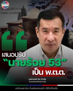 พล.ต.ท.ปิยะ ต๊ะวิชัย โฆษกพรรคพลังประชารัฐ กล่าวว่า “ ในวันตำรวจ อยากขอของขวัญจากนายอนุทิน ชาญวีรกุล นายกรัฐมนตรี และรัฐมนตรีว่าการกระทรวงมหาดไทยในฐานะประธานคณะกรรมการข้าราชการตำรวจ (ก.ตร.) ให้ช่วยผลักดันกรณีปรับนายร้อย 53 จากยศสูงสุด “ร.ต.อ. ” เป็น “พ.ต.ต.”
