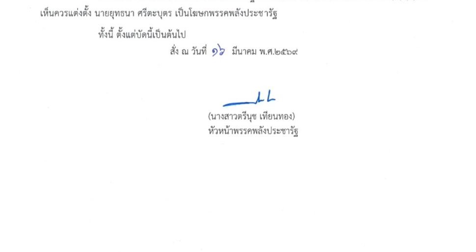มีนาคม 20, 2026 คำสั่งพรรคพลังประชารัฐประกาศตำแหน่ง มีผลตั้งแต่วันที่ ๑๖ มีนาคม ๒๕๖๙ คำสั่งพรรคพลังประชารัฐประกาศตำแหน่ง มีผลตั้งแต่วันที่ ๑๖ มีนาคม ๒๕๖๙