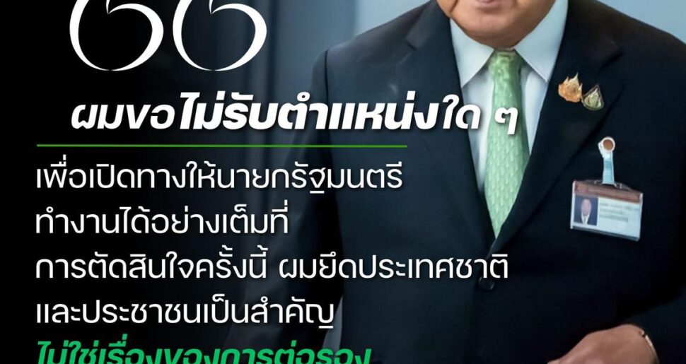 พลเอก ประวิตร วงษ์สุวรรณ ประกาศไม่รับตำแหน่งใดๆในรัฐบาลและพร้อมที่จะสนับสนุนนายกรัฐมนตรีให้ทำงานเพื่อบ้านเมือง